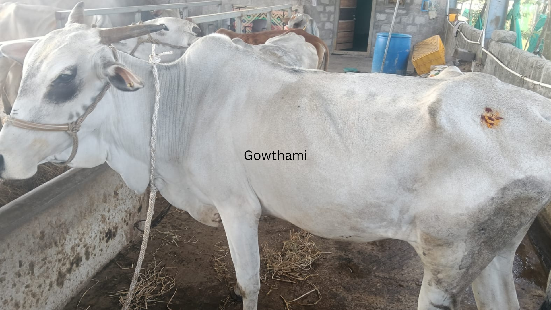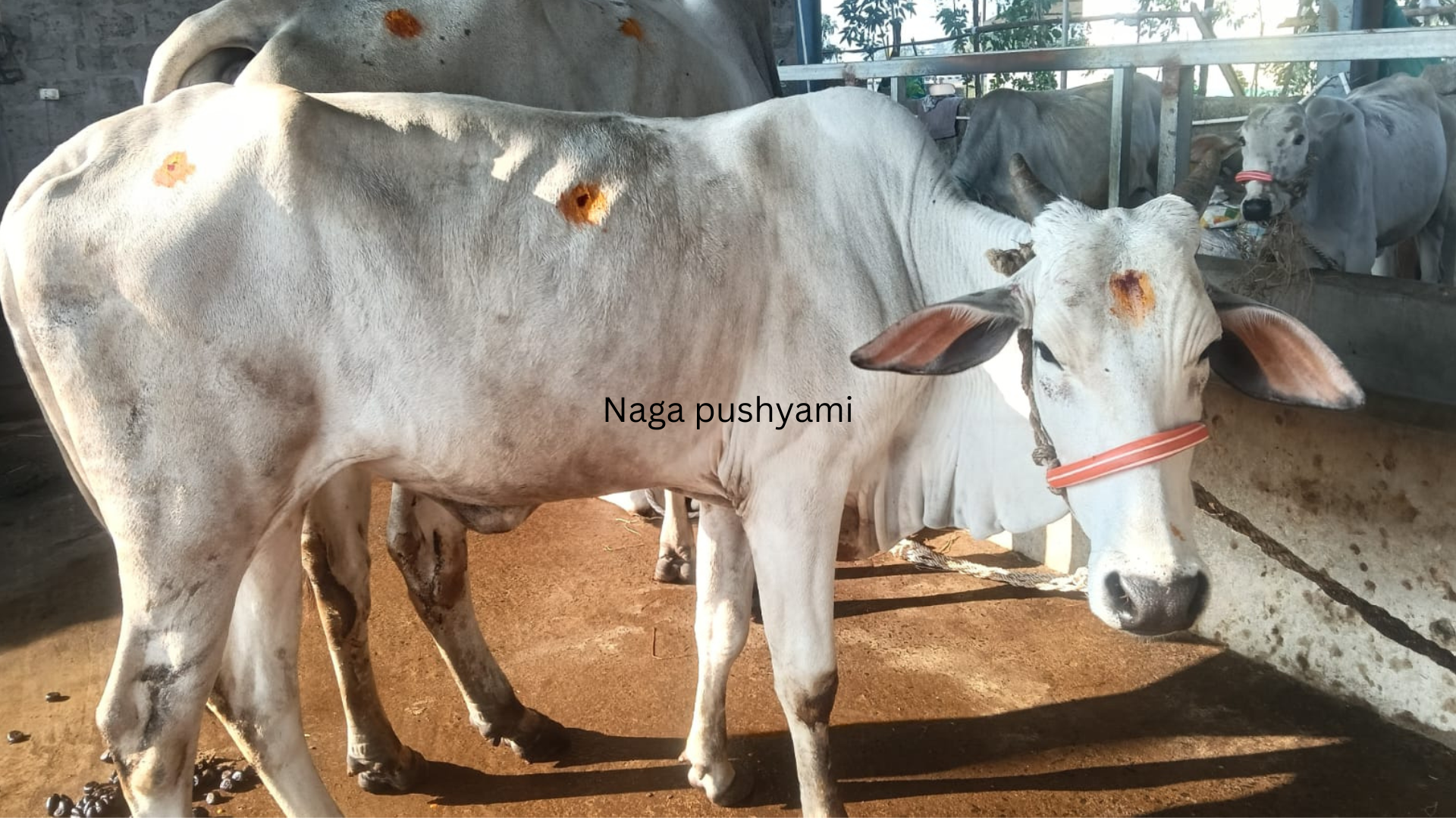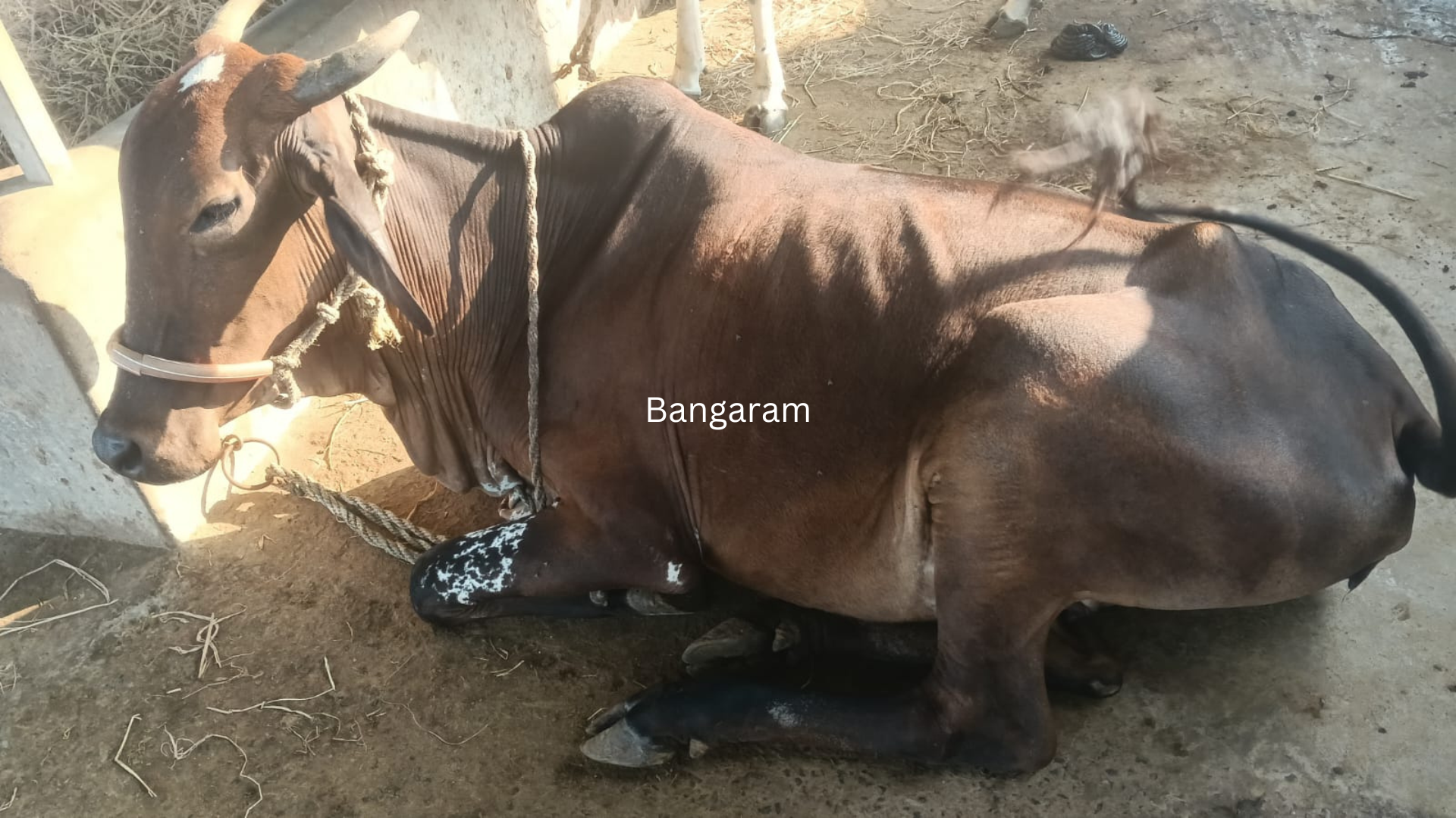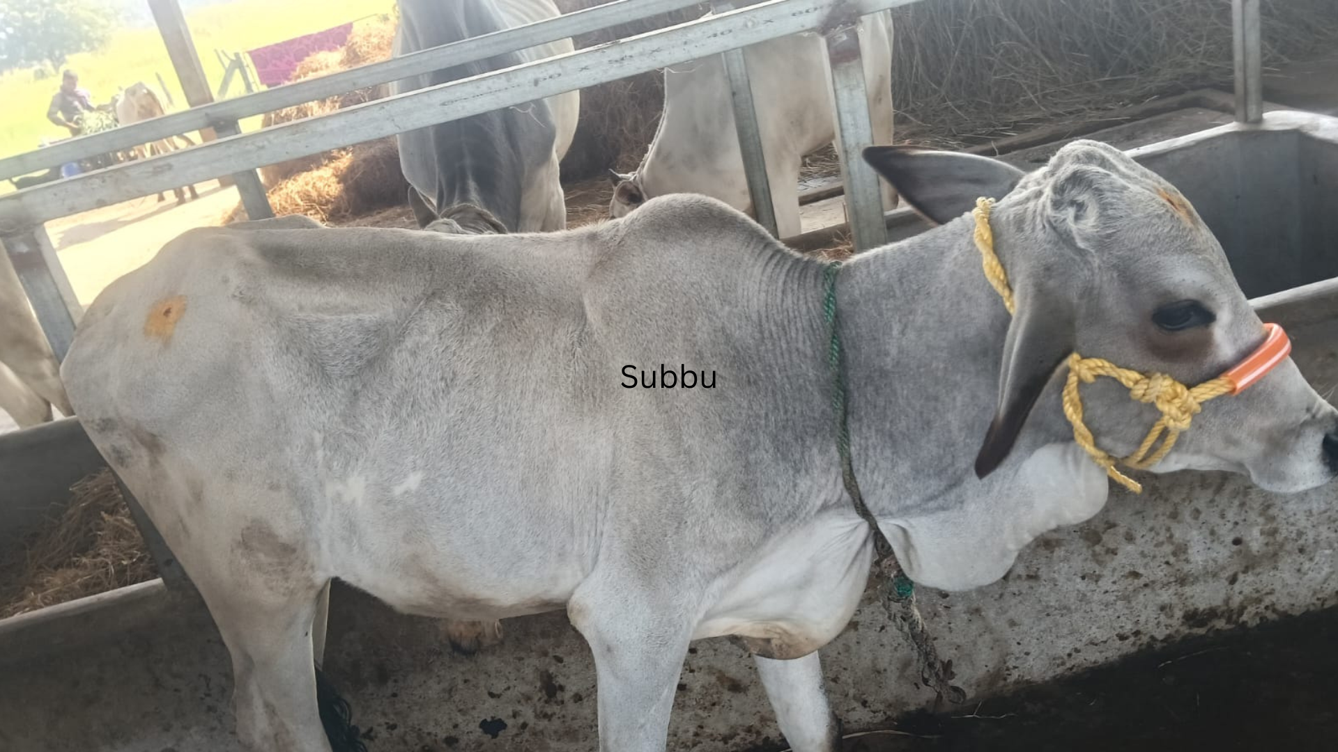 The fertile cow, very gentle to its humans but dominates other cows, the tamer of Manikyam. She is mother of Narayana, our other bull. Her spine is little long compared to others. She takes care of her babies very well. She is the first one to shout if the feed gets late or if she would like to go out for grazing. We are blessed that she is currently 5 months into her pregnancy.