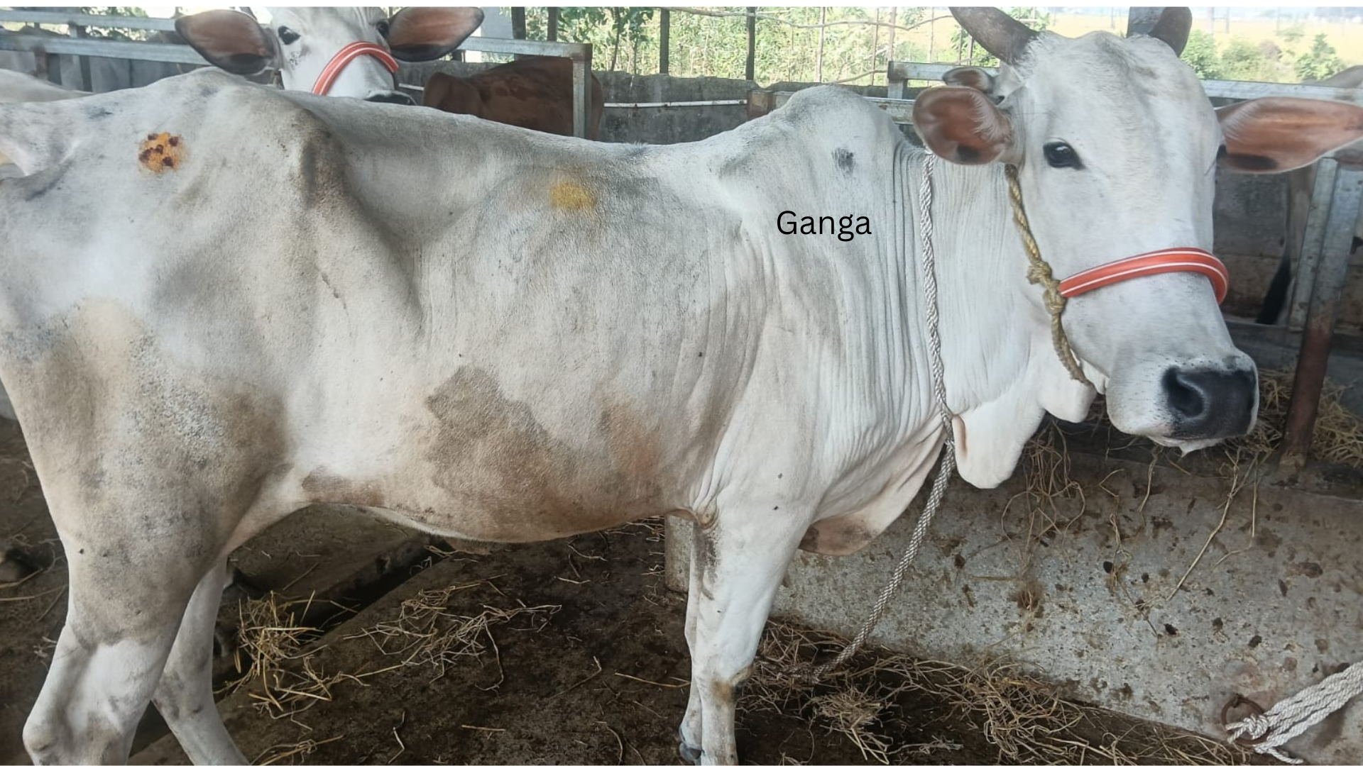 The tallest cow in the lot and strongest one, quite a beauty. It is difficult to control her when she is hungry and unleashed. She would not hesitate to gore and is a heavy eater. She used to pick up fight with Narayana and push him. Although she is strong willed and independent, she likes to be petted too like any other cow when her appetite has been satiated.