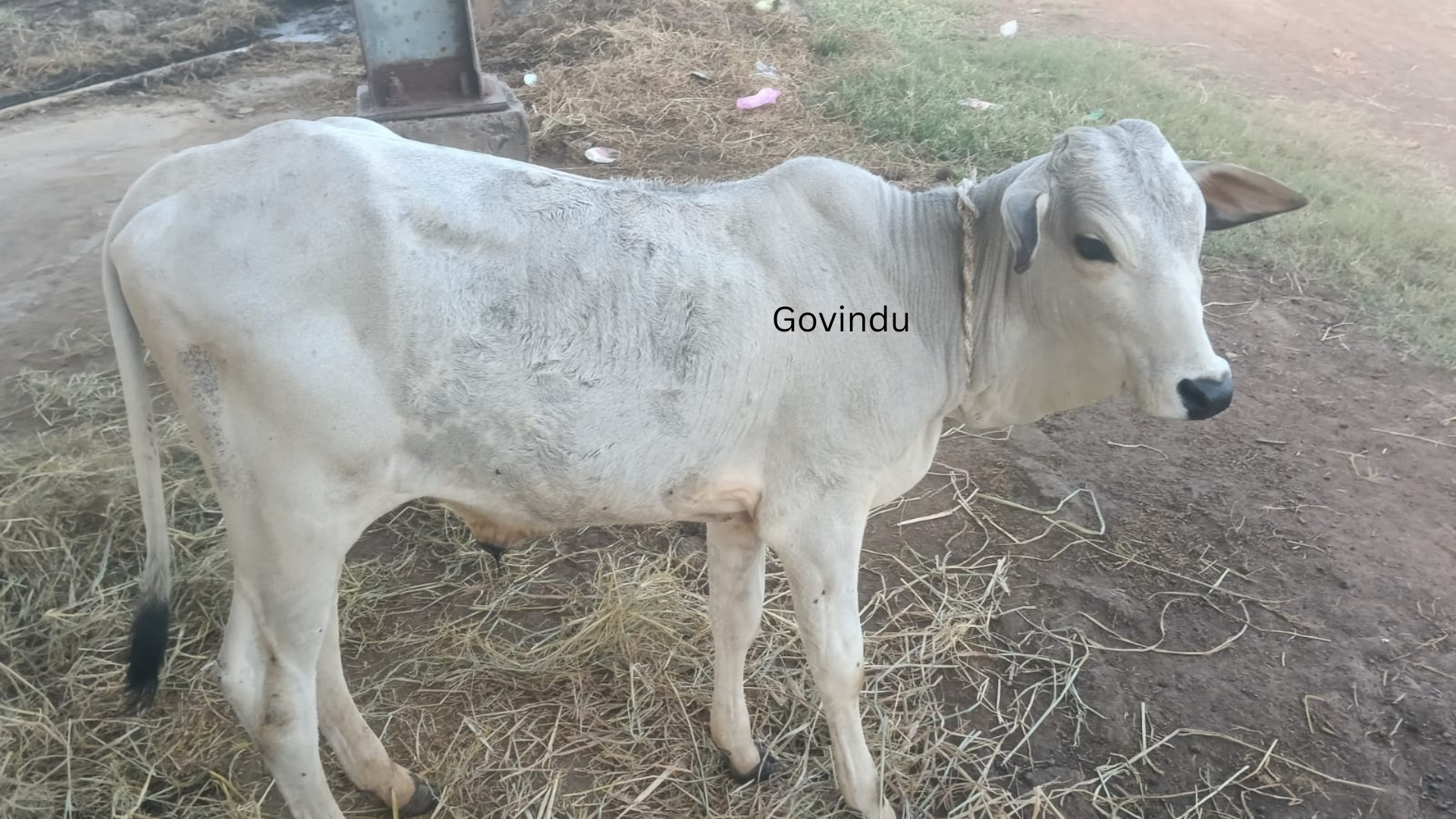 He was born to Maha Lakshmi when I was on trip to Tirumala, so we named him Govindhu. He was a very trepid calf when he was born and would run from people. After he is done drinking milk he stays by his mother and likes to get licked by her. He got diagnosed by lumpy skin disease recently but by krishna's grace he is safe now.